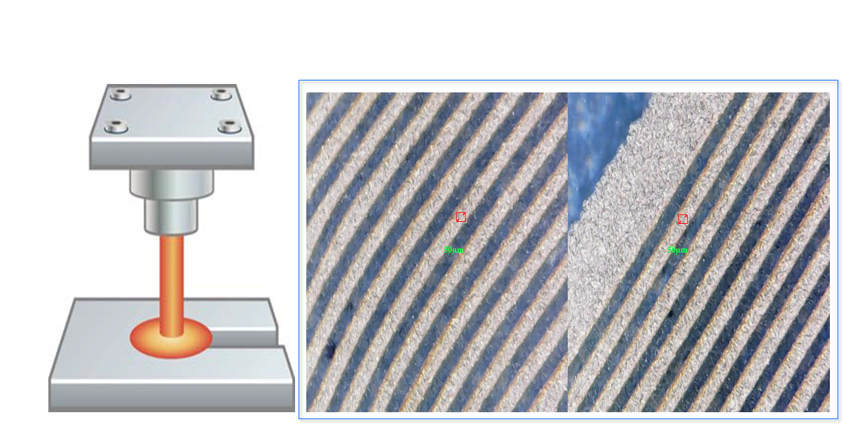 (图 激光刻蚀加工实施例线宽/线距=50μm/50μm,刻蚀银电极线宽稳定,功能完整,边缘热效应小,良品率高)