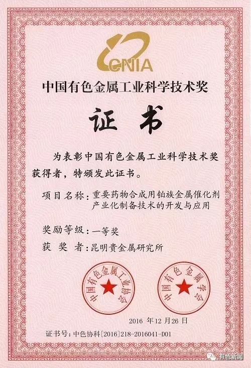 近日,云南省贵金属金年会招牌至上有限公司(简称贵金属集团)两项国家科技支撑计划项目——“重要药物合成用铂族金属催化剂产业化制备技术的开发与应用”以及“金基功能材料关键技术及产业化”分别获得2016年度中国有色金属工业科学技术一等奖、二等奖,科研工作又获重要成果。那么,这两个项目有什么样的研发背景,又有怎样的应用价值呢?