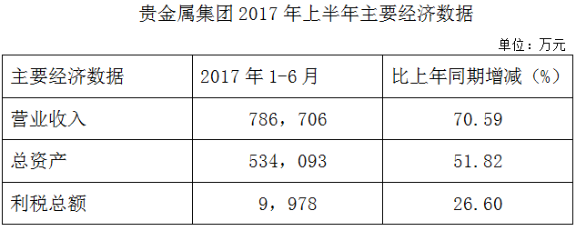 贵金属集团2017年上半年主要财务指标情况表